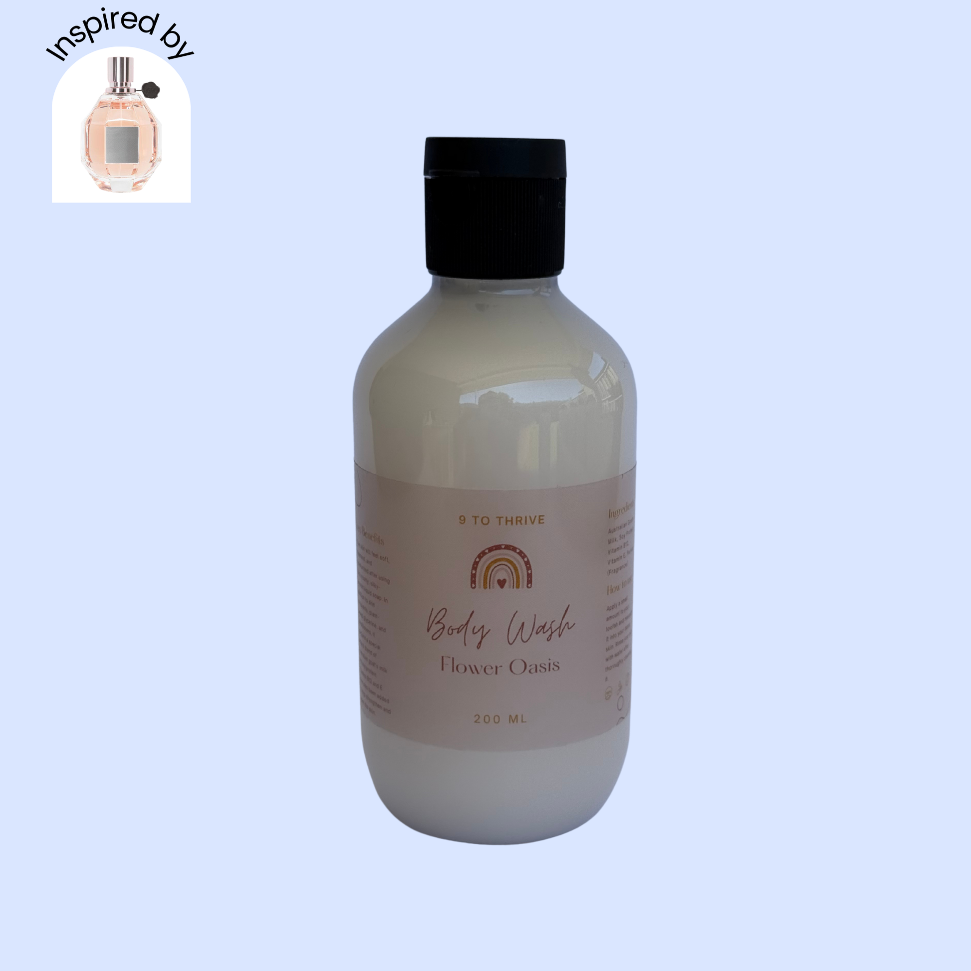 Elevate your bathing ritual with Flower Oasis, a goats milk body wash that immerses you in a floral fantasy. Inspired by the iconic Viktor & Rolf Flowerbomb, this decadent formula drenches your skin in a sensual, aromatic bouquet.