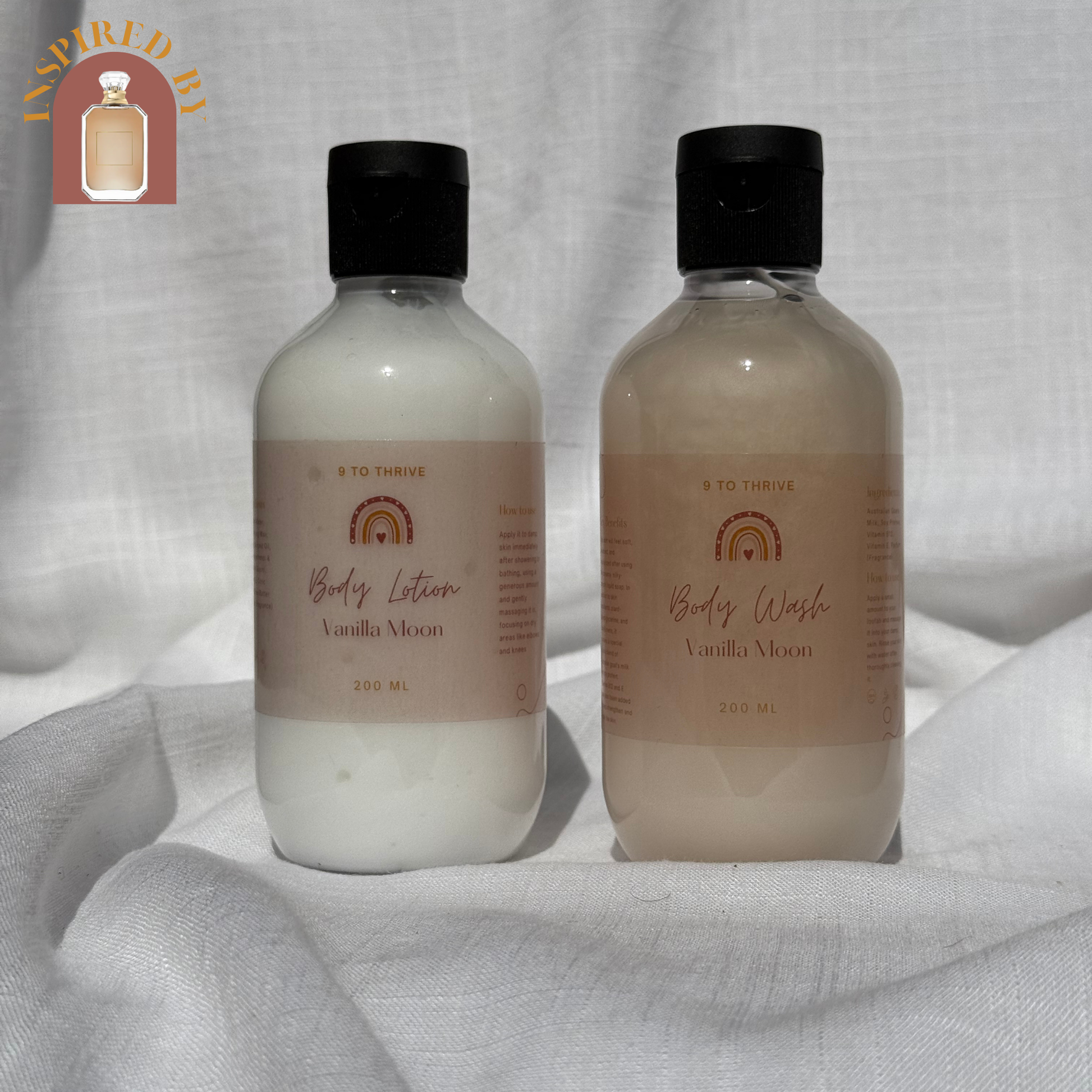 Introducing the Vanilla Moon Duo - the dynamic duo your skin has been craving! This set includes a luxurious body wash and a velvety body lotion, both infused with the heavenly scent of vanilla. Picture yourself in a warm, soothing shower, lathering up with the creamy body wash that leaves your skin feeling refreshed and clean. Then, indulge in the rich and nourishing body lotion that hydrates and softens your skin, leaving behind a subtle hint of vanilla that lingers throughout the day. Pamper yourself with the Vanilla Moon Duo and let your skin bask in the sweet embrace of vanilla goodness.